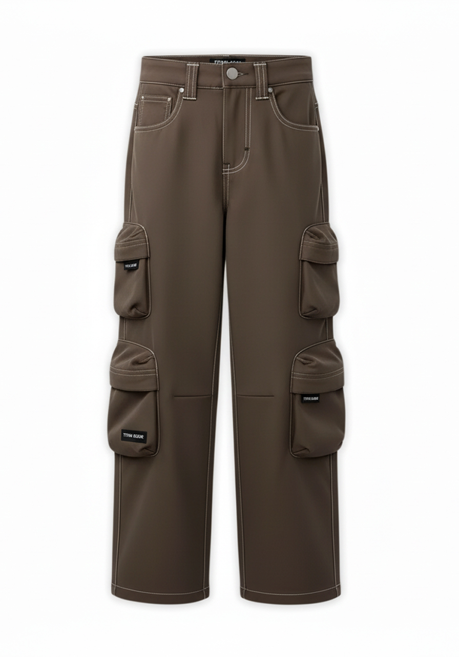 Crafted from a heavy-duty cotton twill, the Titan Gear features a commanding straight-leg fit that offers a comfortable, wide silhouette. The design is defined by its high-contrast stitching and an array of four 3D cargo pockets, providing unparalleled storage and a bold, utilitarian aesthetic. This is the ultimate pant for navigating the urban environment with confidence.